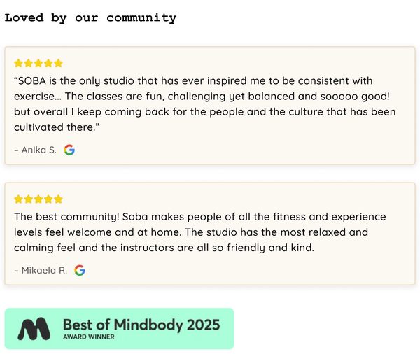Explore everything SOBA has to offer — Pilates, Yoga, Barre, Strength and Stretch — try a few different classes to find your vibe.